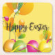 Colorful Easter Eggs and Flowers Square Paper Coaster