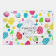 Colorful Easter design with Easter bunnies, eggs, dots, cupcakes and a monogram.