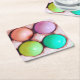 Four colorfully dyed Easter eggs in a carton highlight these spring theme paper coasters.