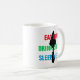 This stylish original mug has the quote "Eat Dirt Drink Coffee Sleep Never" in brilliant bold red, green and blue letters over a cool black minimalist trowel silhouette.