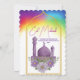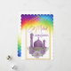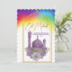 Send joyful Eid greetings with this beautifully designed card featuring a striking purple mosque adorned with delicate watercolor flowers. The golden arch frame and vibrant rainbow background add a festive and uplifting feel, making it perfect for celebrating Eid al-Fitr or Eid al-Adha. Ideal for families, friends, and loved ones, this card captures the essence of joy, faith, and beauty during this special Islamic occasion.