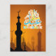 A postcard for Eid festive featuring colorful Eid Mubarak calligraphy in both Arabic and English