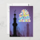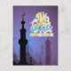 A postcard for Eid festive featuring colorful Eid Mubarak calligraphy in both Arabic and English