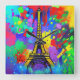 A colorful and vibrant depiction of the Eiffel Tower in Paris, France. The image is a mix of realism and abstract art, with the Eiffel Tower being the focal point. The background is filled with bright colors and geometric shapes.