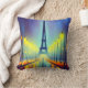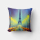 Colorful accent throw pillow, with graphics of the Eiffel Tower in Paris at night. Great gift idea for anyone.