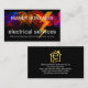 Overleaf, in a black cover, at the top is a gold "home letter-e electrician" logo you can use. This is followed by your prestigious name, the contact details and a slogan option to publicize your services.