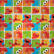 Check out this fun pattern featuring Elmo in various poses popping out of colorful grid squares! © 2021 Sesame Workshop. www.sesamestreet.org