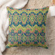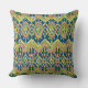 Colorful Ethnic Ikat Pattern on Blue Throw Pillow