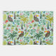 Colorful exotic birds and flowers pattern. Light green background with strong color birds and flowers. Chevron pattern accents.