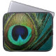 Embrace your bohemian spirit with this vibrant peacock plume laptop sleeve. The intricate detail of the feather "eye" creates a mesmerizing focal point, blending organic patterns with a modern, chic vibe. Whether you're at a festival or in the office, this colorful photographic case adds a touch of free-spirited elegance and natural wonder to your everyday tech accessories.