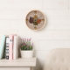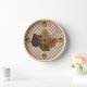 Great looking clock for anyone who loves Fall and has rustic earth tone colors in the room. A light rust and tan checkered background has sweet graphics of acorns representing 4 numbers on the clock, with a hand full of Autumn leaves, in the middle. Customize to add any text you want. Makes a great gift idea.