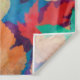 Colorful red, yellow, orange, blue, cyan, green, turquoise and teal autumn fallen leaves on a dark blue and violet background. Fantasy painting.