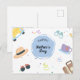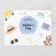 This Father's Day Holiday Postcard offers a colorful and cheerful design that celebrates the diverse interests and hobbies of dads everywhere. The front of the card is adorned with playful illustrations that include a classic car, a stylish fedora, a pair of sunglasses, a cozy teacup, and a travel suitcase, all set against a backdrop of confetti and streamers. The central focus is a blue circle with "Happy Father's Day" elegantly scripted inside. This design captures the essence of Father's Day — a celebration of all the things that make dads special and loved. To add a personal touch, the back of the card is customizable, allowing you to write a heartfelt, personalizable message that will make your dad feel truly celebrated on his special day.