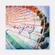 Relive the childhood memories of soft breezes, happy screams, and birds-eye views whenever you use this orange, turquoise, and blue ferris wheel photography magnet. Makes a great gift for a friend, or even yourself!