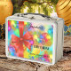 Lunch Box featuring a festive and colorful design with light sparkles and red ribbon. Perfect for a birthday or other festive occasion.