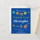 This colorful birthday party invitation postcard features a string of colorful decorative cut paper with a pretty piñata hanging from the center. Have some fiesta fun with this birthday party invite for a boy that has a maraca and a guitar. This card features bright colors with a dark blue background and colorful geometric designs on the back.