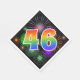 This exciting, fun, and vibrant paper napkin design features a colorful celebratory fireworks inspired pattern, along with the number "46" featuring a multicolored rainbow inspired gradient pattern, on a black colored background. Paper napkins like these could be fun to use at a party being held to honor somebody’s forty sixth birthday, or perhaps a couple’s forty sixth wedding anniversary, or some other 46th event. [~Z0000340]