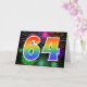The front of this exciting, fun, and vibrant greeting card design features a colorful pattern inspired by celebratory fireworks, along with the number "64" having a multicolored rainbow like gradient pattern, on a black colored background. The inside features a personalized greeting message, or could perhaps be cleared and left blank if a message is to be written by hand instead. A greeting card like this might be a fun way to celebrate somebody’s sixty fourth birthday, or perhaps a couple’s sixty fourth wedding anniversary, or some other 64th event. [~Z0000342]