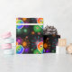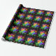 This exciting, fun, and vibrant wrapping paper design features a colorful celebratory fireworks inspired pattern, along with the number "6" having a multicolored rainbow like gradient pattern, on a black colored background. Wrapping paper like this could perhaps be a fun and happy way of wrapping gifts or presents being given for somebody’s sixth birthday, or perhaps for a couple’s sixth wedding anniversary, or some other 6th event. [~Z0000341]