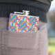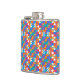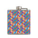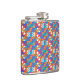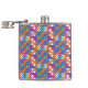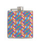 Colorful flask with a vibrant geometric pattern in blue, red, orange, and white. Viewed from the front and side, conveying a lively and modern look.