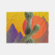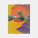 Summer mood, colorful fleece blanket with cacti, sun and mountains. Abstract art.