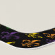Colorful fleur-de-lis seamless pattern. Yellow, purple, green, and orange colors on a black background.