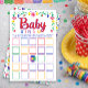 This vibrant and fun Baby Bingo game is perfect for your next baby shower! Featuring a cheerful floral design in a rainbow of colors, this game card is sure to add a touch of whimsy to your celebration. The colorful squares make it easy to mark off the gifts as they're opened. First to get 5 in a row wins! Get ready for some delightful baby shower fun with this unique and engaging game. It's a great way to keep guests entertained while celebrating the arrival of the little one. Download and print these cards for an unforgettable baby shower game.