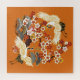 Cranes and Sakura in a Colorful Vintage Pattern - Japanese Bird and Floral Folk Fashion on an Orange Background.