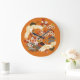 Colorful Floral Cranes Sakura Pattern Large Clock