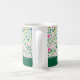 Enjoy your favorite drinks in fresh, preppy style with this personalized floral mug. Featuring a vibrant botanical pattern of pink, blue, and yellow blooms layered with lush greenery, this mug brings cheerful charm to every sip. The deep green accent band along the bottom showcases a personalized name in elegant script, adding a clean, custom touch that feels classic and refined. Perfect for coffee, tea, or hot cocoa, this mug blends everyday function with timeless floral style, making it a lovely addition to your kitchen or a thoughtful personalized gift.