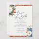 Colorful Floral QR Code Wedding Save the Date... Floral bouquets in watercolor shades of navy blue, rust red, and creamy white border your custom text on a cheerful wedding Save the Date design created to elicit a happy, positive feeling as you prepare for your special day. The back of the card contains your wedding website information and an example QR code graphic you can replace by simply entering your own wedding website URL on the template. All example text on both sides of the card (aside from the calligraphy elements) can be easily revised with your own details on the same personalization template.