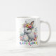 Delightful Happy Easter coffee cup showcasing an adorable baby bunny surrounded by vibrant spring flowers and a beautifully decorated Easter egg. With its colorful retro typography, this design perfectly captures the joyful spirit of the holiday!