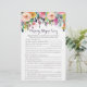 Our colorful flower baby shower nursery rhyme quiz game with a white background has 15 nursery rhyme phrases with words missing. Have guests complete the rhymes and whoever gets the most correct wins. ANSWER KEY: 1)Flute 2)Basket 3)Wool 4)Pig 5)Muffin Man 6)Clock 7)Sons 8)Pail of water 9)Fat 10)Sheep 11)Field mice 12)Curds and Whey 13)Garden 14)Men 15)Farmer’s wife