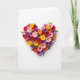 This design shows a large heart shape made from many small, daisy-like flowers on a plain white background. The flowers are packed closely together, creating a full, textured look that feels sweet and romantic 💘. You can see reds, pinks, purples, yellows, and oranges, with a few green leaves peeking out between the petals. The flower centers vary a bit in color, from light yellow to deeper brown, which adds extra detail without feeling busy. The lighting is bright and even, so the colors stand out clearly and there are no strong shadows. There is no text on the card, so the heart of flowers is the main message all on its own ❤️. It’s a simple, cheerful design that’s great for letting someone know you care, and for sharing Valentine’s Day feelings 😘.