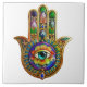 Colorful Flower Petals Turquoise Third Eye Hamsa Ceramic Tile
