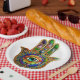 Colorful Flower Petals Turquoise Third Eye Hamsa Paper Plates