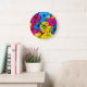 Colorful Flowers, Daisies - Blue Yellow Pink Large Clock