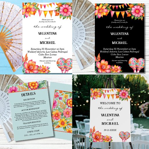 Celebrate your special day with our beautifully designed personalized Mexican Wedding Program Hand Fan, perfect for a vibrant and joyful fiesta wedding celebration. Featuring colorful pink and orange flowers with matching bunting flags against a crisp white background, this fan adds a festive and elegant touch to your ceremony. Adorned with floral patterned pink and blue maracas, each hand fan is a charming blend of tradition and style, ideal for keeping guests cool while sharing your wedding details. A perfect keepsake for your guests, this wedding program fan captures the spirit of your Mexican Wedding with warmth and color.