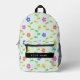 Colorful Flowers, Light Green Background, Black Printed Backpack