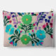 embroidered flowers in multi colors. colorful crafty cottage style floral pattern with green flowers, blue flowers, purple flowers, pink flowers, and flower buds in hand embroidery on fabric. feminine, cheerful, and elegant flowing design. pretty and sweet multi-colored needlework with bright dainty flowers elegantly displayed in an embroidery.