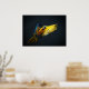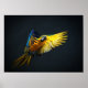 Colorful flying Ara on a dark background Poster