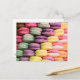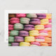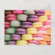 These sweet French meringue-based confections are filled with a tasty center to create a deliciously sweet cookie sandwich. This stacked rainbow of colors signifies different flavor treats! Colorful Cute French Macaron Cookies Postcard