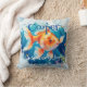 The pillow features a delightful design of a large goldfish on an aquatic background in bright, cheerful colors that stand out beautifully. The humorous depiction of the goldfish, along with the ability to personalize it with your fish's name and the phrase “A Splash of Joy” beneath the name, is sure to bring a smile to anyone's face, making it a great conversation starter and a fun decorative piece.