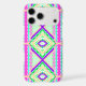 Elevate your style with this vibrant Colorful Geometric Boho Pattern iPhone case. Inspired by traditional textile artistry, this design features a stunning pixel-art style diamond motif in a refreshing palette of mint green, bright pink, and lavender. The intricate geometric patterns offer a modern bohemian vibe that is both eye-catching and unique. Perfect for those who love bold colors and culturally-inspired aesthetics.