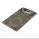 Colorful geometric clipboard with vibrant diamond pattern showcasing reds, blues, greens, and yellows. Bold and energetic design, front and back view.