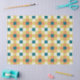 A vibrant geometric pattern featuring a repeating grid of squares in a retro-inspired color palette of teal, mustard yellow, warm orange, and soft beige. The balanced layout creates a rhythmic, modern yet nostalgic design ideal for backgrounds, textiles, or digital surfaces. Its clean structure and bold colors make it versatile for contemporary graphic applications.