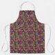 Great color and even though I ordered the kid size, it covers well enough to use during the holidays. I am not a big woman and prefer a shorter apron. I stand 5"6" and the length of the garment goes to mid-thigh. The tie straps fit well at my waist and even though there is no neck strap adjustment, the opening is plenty big enough. I am happy with the size and fit. I am sharing my apron with my 10 year old grandson, too! The color is vibrant and looks good, as shown on the website. The stitching looks strong and reinforced. Photographed is front side and back side of the apron, reinforced straps and coloring. My phone camera may not be the best at showing the details.