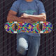 This skateboard deck design features a pattern of vivid and colorful geometric shapes. It is a great gift for pattern lovers.