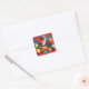 Colorful Geometric Shapes on Red Background Square Sticker