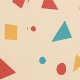 A lively pattern of geometric shapes, including circles, triangles, and squares in vibrant shades of red, blue, yellow, and pink. The playful design stands out on a soft beige background, perfect for fun, modern products or stationery.